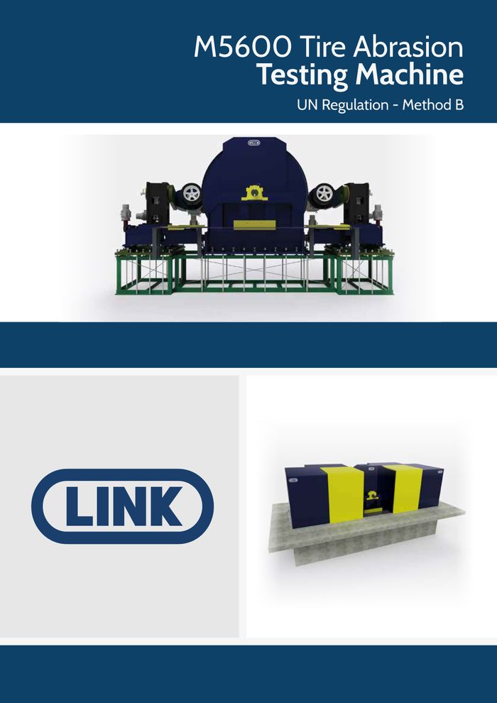 The LINK Model 5600A Tire Abrasion Testing Machine is designed to perform the tire abrasion test outlined in the "UN Regulation on uniform provisions concerning the approval of tires with regard to abrasion performance" as it currently stands on September 5, 2025: Test method (b) using the indoor drum test method. Additionally, Camber angle control has been added due to an expected addition of this requirement in the regulation. The regulation can be used to satisfy the testing requirements for tire abrasion outlined in Euro 7. Link’s Tire Abrasion Testing Machine can be outfitted with one or two stations as per method B. Test procedures for both options are included with the control software.